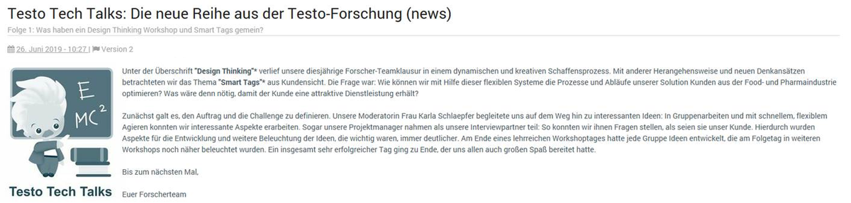 Der untenstehende Bericht erscheint im firmeninternen Intranet.