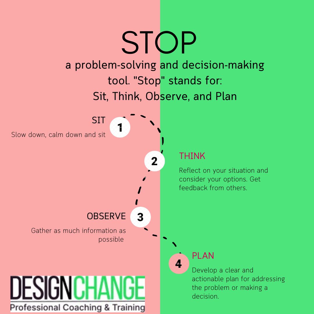 STOP is an acronym that stands for “Sit, Think, Observe, and Plan.” It is a problem-solving and decision-making tool that can be used to help individuals 🫦 or teams effectively handle challenges and make better 🤯decisions.